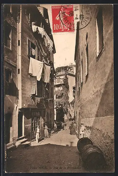 AK Nice, Rue de la Providence dans le Vieux Nice avec linge suspendu et bâtiments historiques