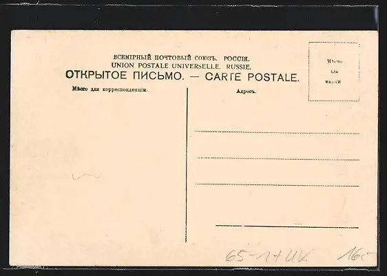 Personenbezogene Daten auf der Rückseite der Karte wurden durch blauen Textmarker unkenntlich gemacht. Die blauen Stellen sind auf die Vorderseite durchgeweicht und wirken sich negativ auf das Postkartenfoto aus