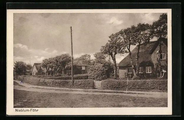 AK Nieblum-Föhr, Ortspartie mit reetgedeckten Häusern