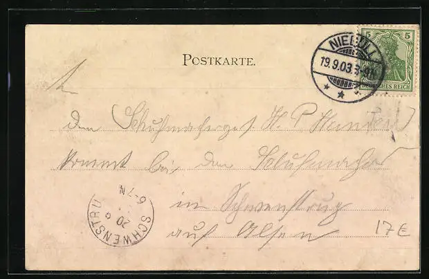 alte Ansichtskarte, gelaufen 1903, guter Zustand