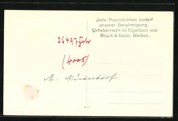alte Ansichtskarte, ungelaufen, rückseitig Klebe- und Papierreste, guter Zustand