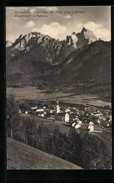 AK Niederdorf, Ortsansicht mit Kirche aus der Vogelschau