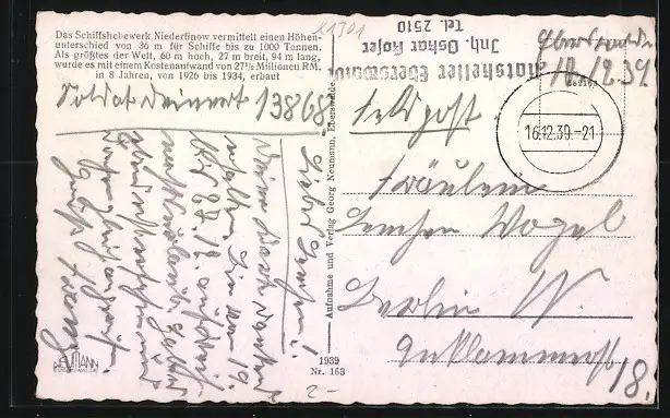 alte Ansichtskarte, gelaufen 1939, Eckknick re. oben, guter Zustand