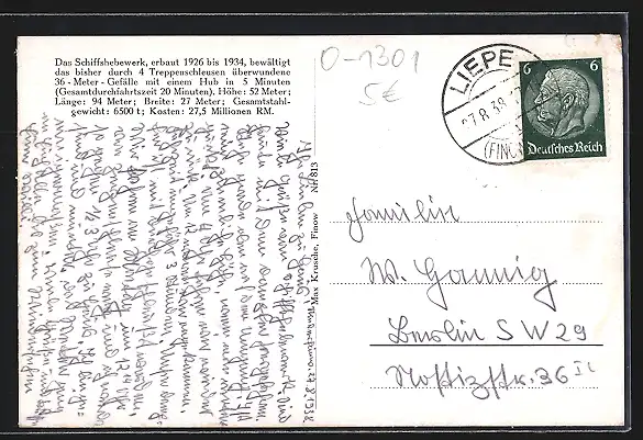 gelaufen 1938, Eckknicke li. oben, minimale Einrisse li. oben, guter Zustand