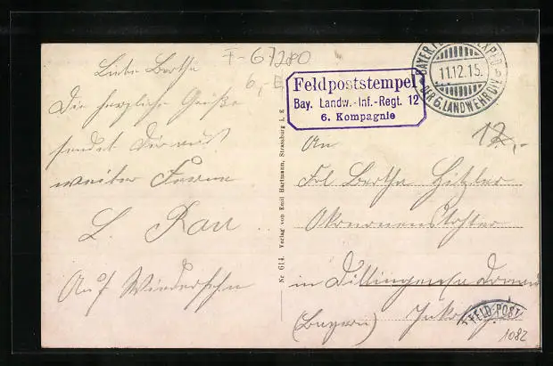 alte Ansichtskarte, gelaufen als Feldpost 1915, guter Zustand