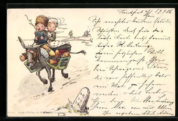 AK Niederländische Kinder auf einem Esel