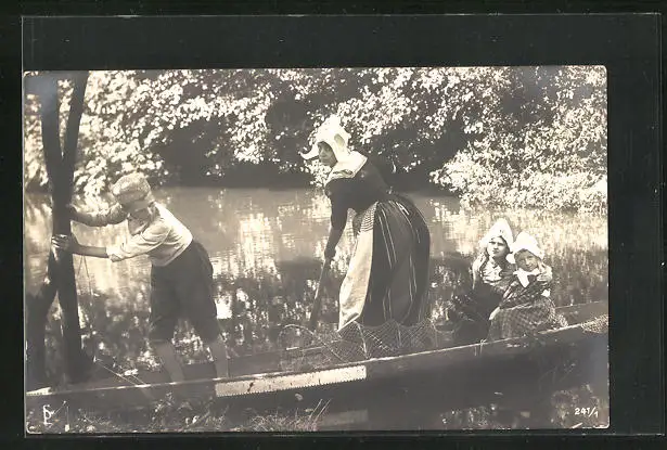 AK Niederländische Kinder im Fischerboot