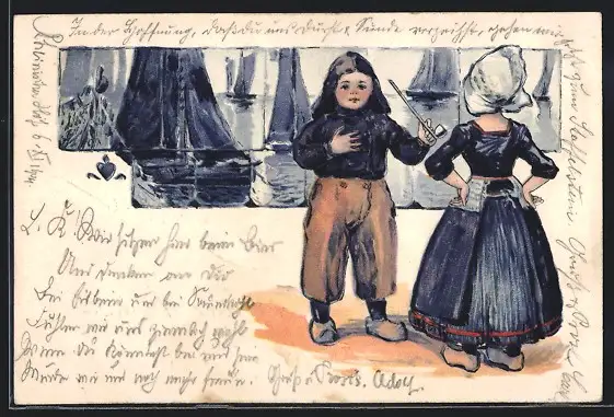 AK Niederländische Kinder in Tracht