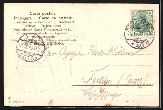 alte Ansichtskarte, gelaufen 1904, Eckknick re. oben, guter Zustand