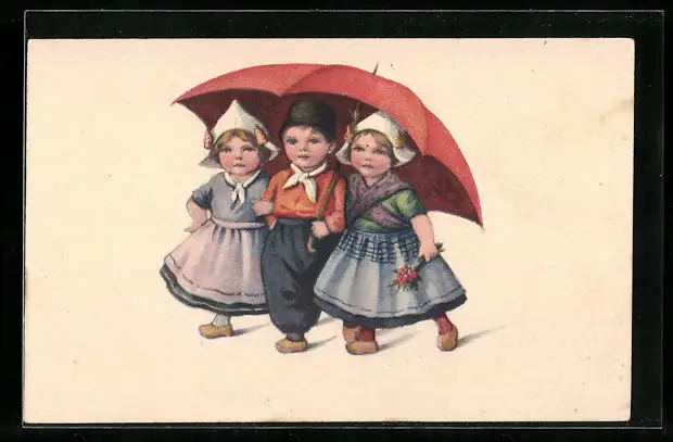 AK Niederländische Kinder unter dem Schirm