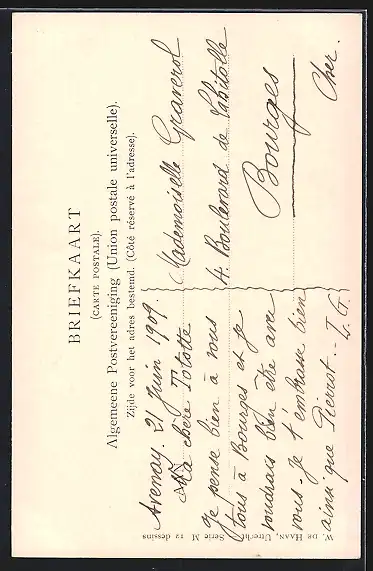 Personenbezogene Daten auf der Rückseite der Karte wurden durch blauen Textmarker unkenntlich gemacht. Die blauen Stellen sind auf die Vorderseite durchgeweicht und wirken sich negativ auf das Postkartenfoto aus