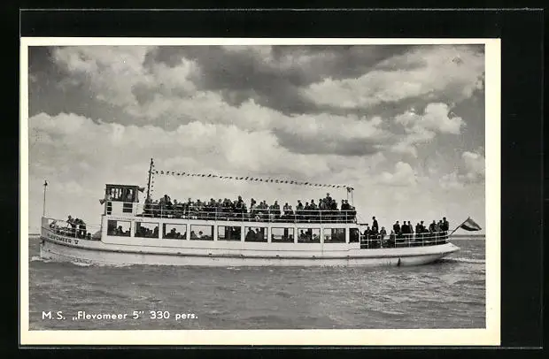 AK Niederländischer Salondampfer MS Flevomeer 5 in Flaggengala