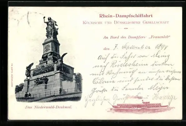 AK Niederwald-Denkmal, Dampfer Frauenlob