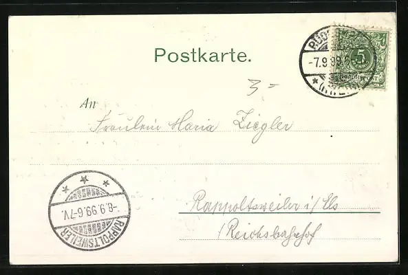 alte Ansichtskarte, gelaufen 1899, guter Zustand