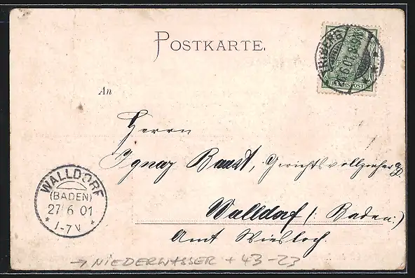 alte Ansichtskarte, gelaufen 1901, Bugspur re. oben, guter Zustand