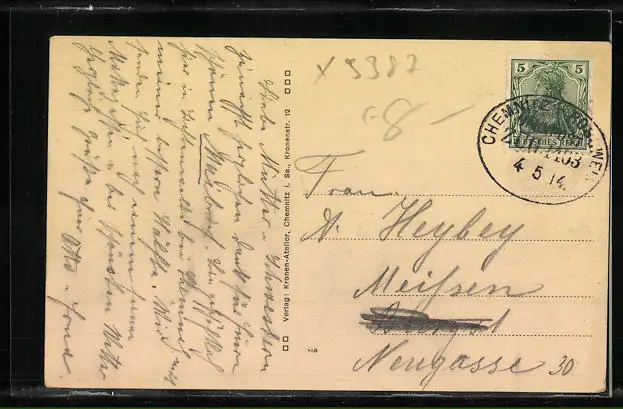 alte Ansichtskarte, gelaufen 1914, Stempelspur, guter Zustand