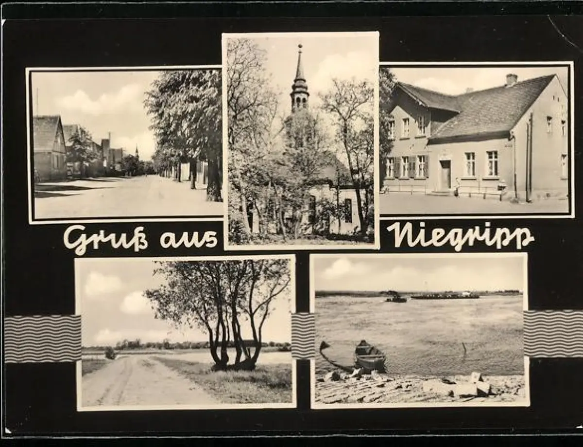 AK Niegripp, Konsum-Gaststätte, Kirche, Hauptstrasse