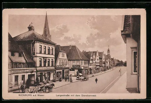 AK Nienburg a. d. Weser, Langestrasse mit dem Storchennest