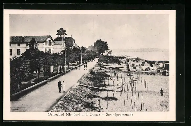 AK Niendorf a. d. Ostsee, Strandpromenade mit Strand