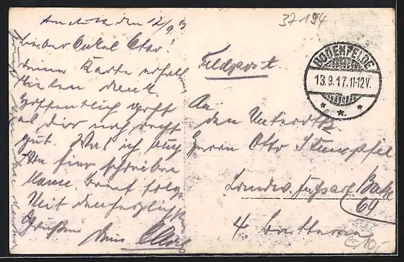 alte Ansichtskarte, gelaufen 1917, guter Zustand