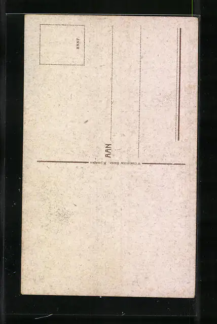 Personenbezogene Daten auf der Rückseite der Karte wurden durch blauen Textmarker unkenntlich gemacht. Die blauen Stellen sind auf die Vorderseite durchgeweicht und wirken sich negativ auf das Postkartenfoto aus