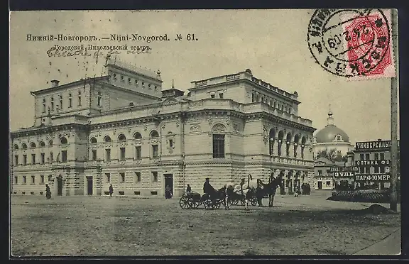 AK Nijni-Novgorod, Kutsche vor dem Theater
