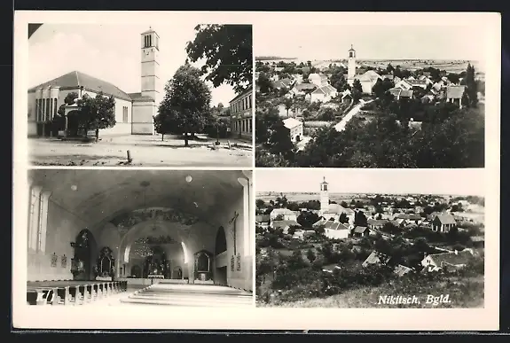 AK Nikitsch, Kirche, Aussen- und Innenansicht, Panorama