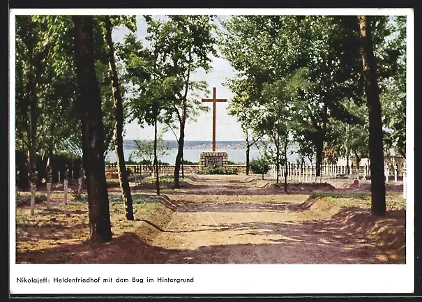 AK Nikolajeff, Heldenfriedhof mit dem Bug im Hintergrund