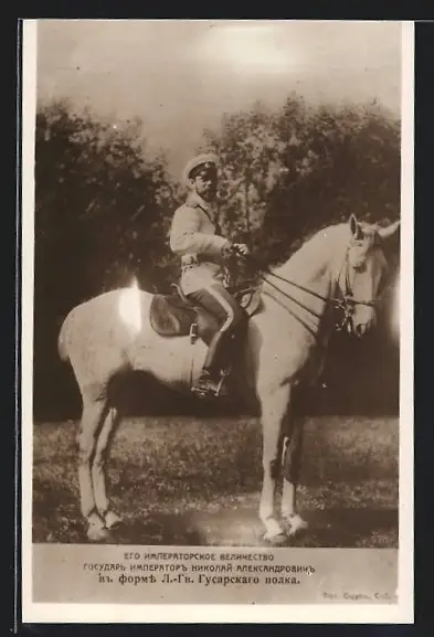 AK Nikolaus II von Russland, bei einem Ausritt abgelichtet