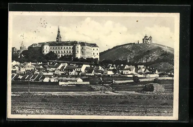 AK Nikolsburg /N. D., Ortsansicht mit Schloss