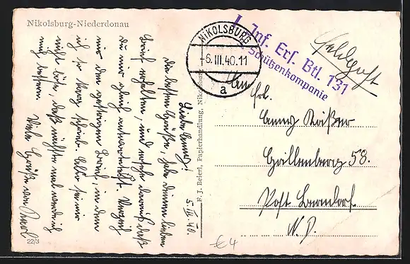 alte Ansichtskarte, gelaufen 1940, Eckknick re. unten, Bugspur li. unten, guter Zustand