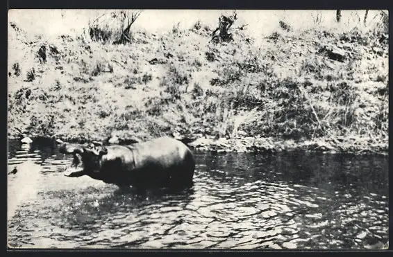 AK Nilpferd mit geöffnetem Maul im Wasser