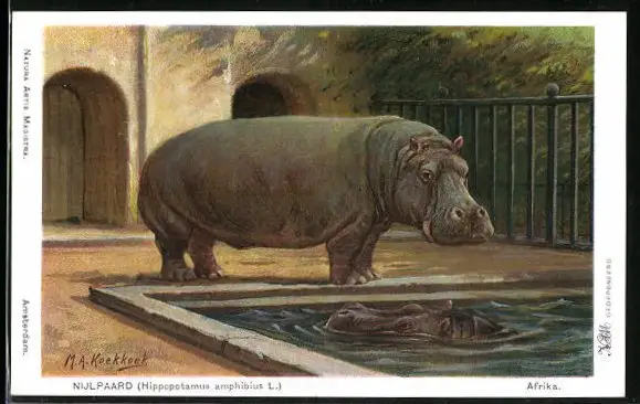 AK Nilpferde in einem Aussengehege am Wasserbecken