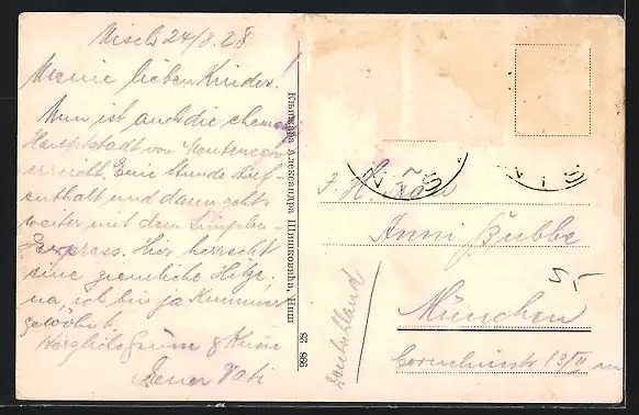 alte Ansichtskarte, gelaufen 1928, Ecken bestoßen, Briefmarke entfernt, Eckknick oben li., guter Zustand