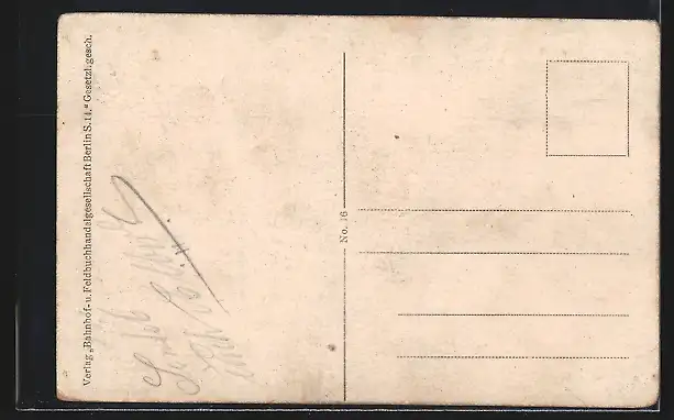 Personenbezogene Daten auf der Rückseite der Karte wurden durch blauen Textmarker unkenntlich gemacht. Die blauen Stellen sind auf die Vorderseite durchgeweicht und wirken sich negativ auf das Postkartenfoto aus
