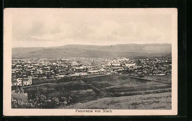 AK Nisch, Ortspanorama aus der Vogelschau