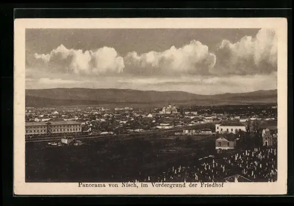 AK Nisch, Panorama, Im Vordergrund der Friedhof