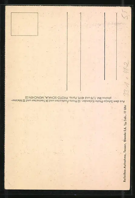 Personenbezogene Daten auf der Rückseite der Karte wurden durch blauen Textmarker unkenntlich gemacht. Die blauen Stellen sind auf die Vorderseite durchgeweicht und wirken sich negativ auf das Postkartenfoto aus