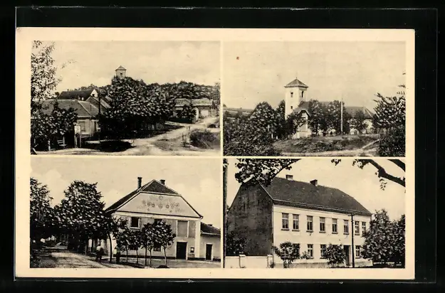 AK Nizkovice, Kirche, Gebäudeansicht, Ortspartie