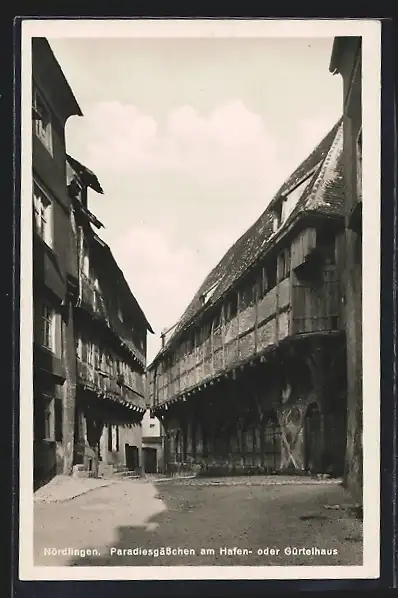 AK Nördlingen, Paradiesgässchen am Hafen- oder Gürtelhaus