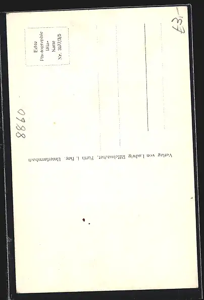 Personenbezogene Daten auf der Rückseite der Karte wurden durch blauen Textmarker unkenntlich gemacht. Die blauen Stellen sind auf die Vorderseite durchgeweicht und wirken sich negativ auf das Postkartenfoto aus