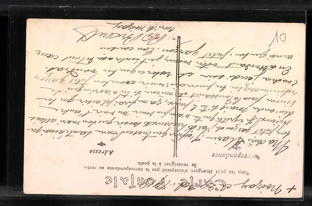 Personenbezogene Daten auf der Rückseite der Karte wurden durch blauen Textmarker unkenntlich gemacht. Die blauen Stellen sind auf die Vorderseite durchgeweicht und wirken sich negativ auf das Postkartenfoto aus