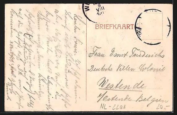alte Ansichtskarte, gelaufen, Briefmarke entfernt, guter Zustand