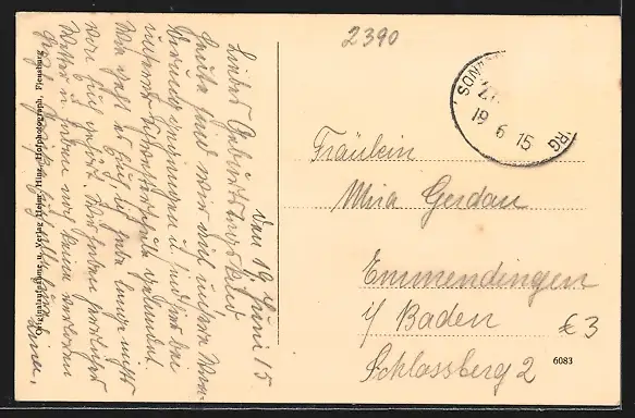 alte Ansichtskarte, gelaufen 1915, Briefmarke entfernt, guter Zustand