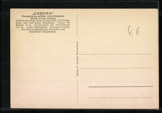 AK Nordd. Lloyd Passagierschiff Europa und Schlepper
