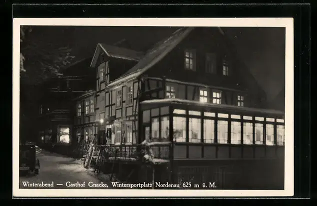 AK Nordenau, Gasthof Gnacke an einem Winterabend