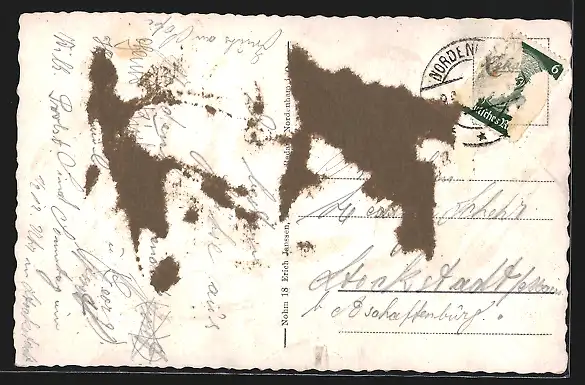 alte Ansichtskarte, gelaufen, Briefmarke entfernt, rückseitig Klebe- und Papierreste, guter Zustand