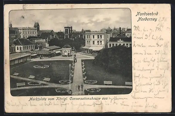 AK Norderney, Marktplatz vom Kgl. Converstaionshause aus