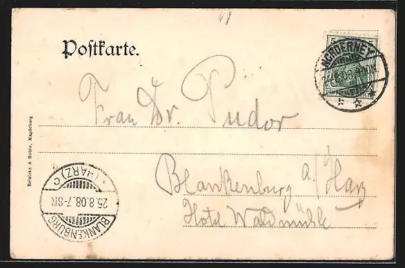 alte Ansichtskarte, gelaufen 1908, Stempelspur, guter Zustand