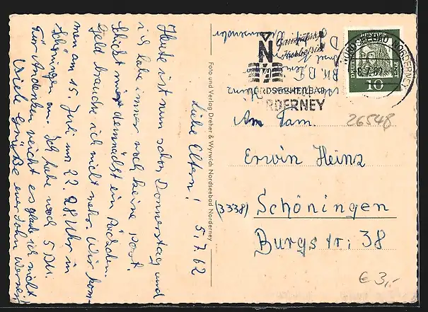 alte Ansichtskarte, gelaufen 1962, guter Zustand